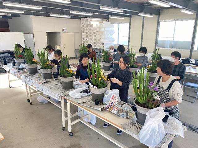 正月をテーマに植えつけをしました。参加した方からは「楽しくできました」と好評でした。