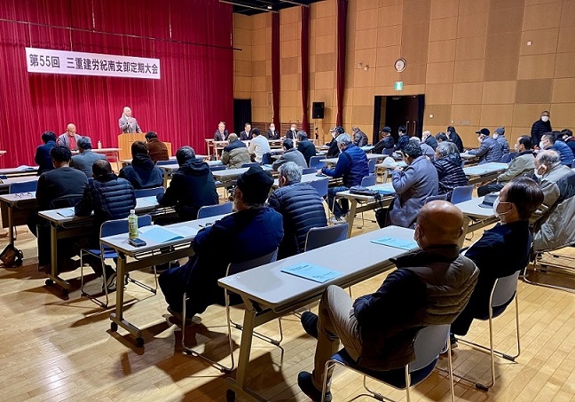 2月4日、熊野市文化交流センターにて第55回三重建労紀南支部定期大会を開催しました。昨年1年の総括や組合の諸課題について討議が行われました。